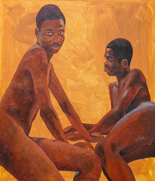Daniel Oruwhone draws inspiration from the Renaissance masters, intertwined with the desire to create a resurgence of Black self-awareness, and features of African mythology in contemporary times. Exploring figuration, the artist juxtaposes classical and contemporary philosophy drawn from history and diverse life experiences, questioning the viewer’s perception and exploring themes of sexuality and historical nostalgia.